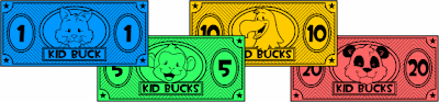 Have a fun time teaching kids the value of hard work or good behavior and how to save for purchases and reap the rewards. Just print 'em out and cut 'em out. The proportions are suitable for letter size paper printing, and well suited if your printer has fit-to-page "borderless" or "edge to edge" printing capability.